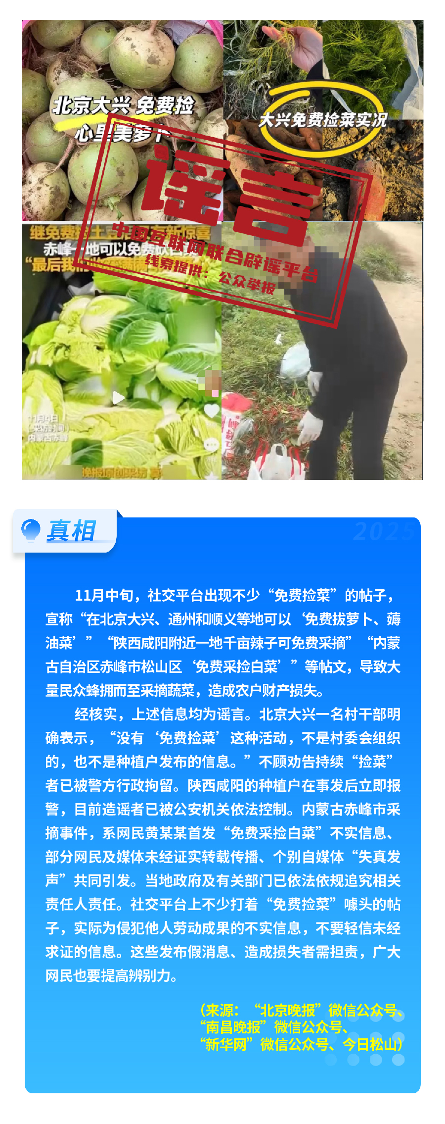 此外,“免费捡菜”传言在多地蔓延,北京大兴、内蒙古赤峰、陕西咸阳等地,均有群众因不实信息误导涌入农田哄抢,导致农户财产受损;“充‘劣质电’会导致新能源汽车自燃”的说法,毫无科学依据,实为造谣者为博流量恶搞。另有“高见观潮”“象视汽车”“987疯狂奶爸”等账号在多平台编发涉汽车行业的虚假信息,恶意抹黑诋毁汽车企业、汽车产品,损害汽车行业发展形象。
